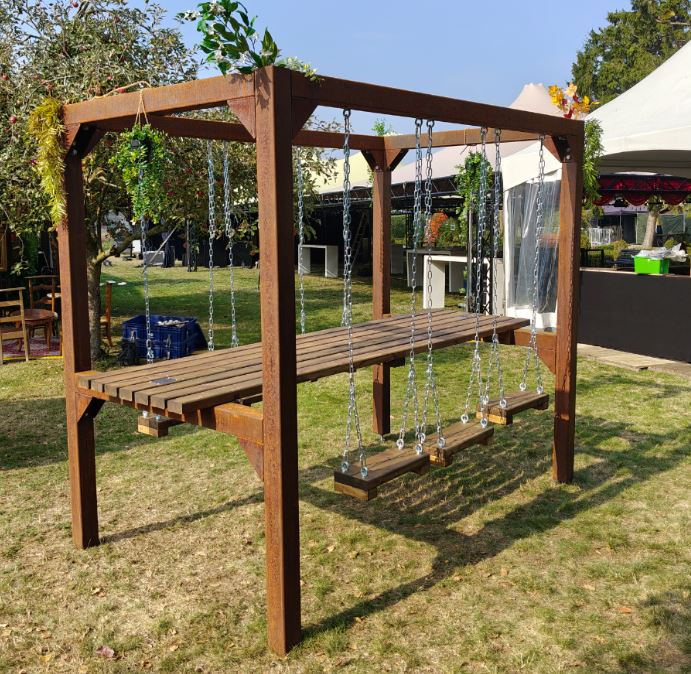 Speciaal voor het Oostfestival in Tielt-Winge ontwierpen we een uniek tuinmeubel in cortenstaal. Dit bijzondere materiaal krijgt door de jaren heen een warme, roestbruine kleur die elk stuk een karaktervolle uitstraling geeft. De levendige schakeringen veranderen met het licht en het seizoen, waardoor je tuinmeubel telkens opnieuw een andere uitstraling krijgt. Duurzaam, tijdloos en met een natuurlijke elegantie vormt cortenstaal een harmonieuze verbinding tussen design en natuur.